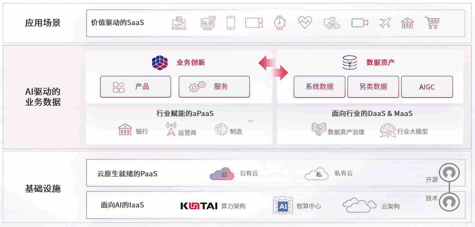 数字时代,,围绕企业数字化转型的关键要素,,PA真人游戏数码开创性的提出数云融合战略和技术体系框架,,着力在云原生、、、、数字原生、、AI原生和信创产业上架构产品和服务能力,,,为处在不同数字化转型阶段的快消零售、、、、汽车、、、金融、、、医疗、、、政企、、、、教育、、、、运营商等行业客户提供泛在的敏捷IT能力和融合的数据驱动能力,,,构建跨界融合创新的数字业务场景和新业务模式,,,助力企业级客户建立面向未来的核心能力和竞争优势,,,,全面推动社会的数字化、、智能化转型升级。。。